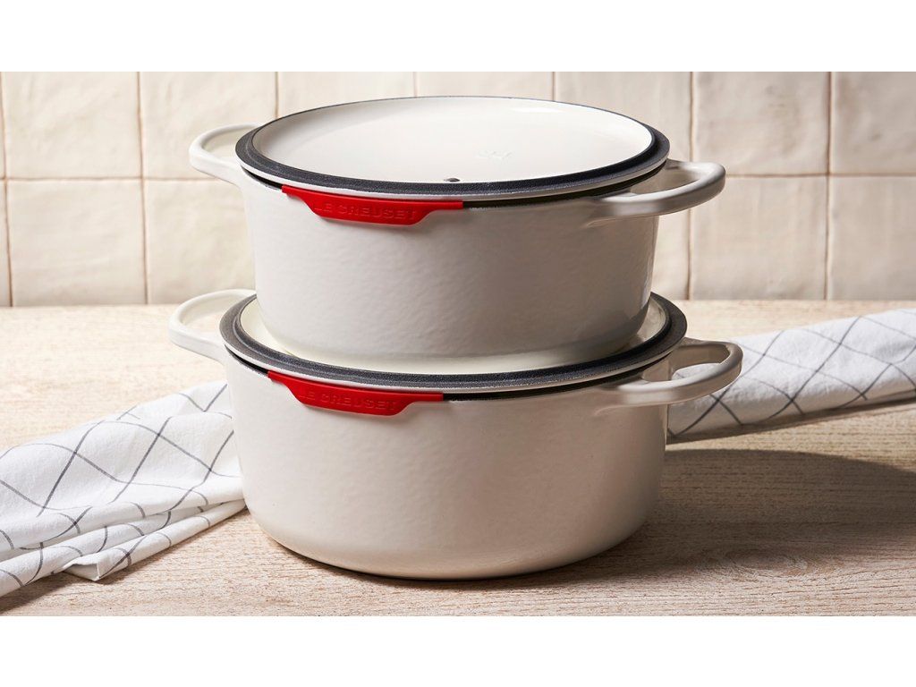 Tieto flexibilné silikónové chrániče poklopov sa pri skladovaní prevrátia na okraj liatinového riadu. Tento kuchynský doplnok je odolný voči škvrnám a trvácny, pomáha predchádzať odštiepeniu a škrabancom a chráni Vaše najcennejšie kúsky po mnoho rokov.