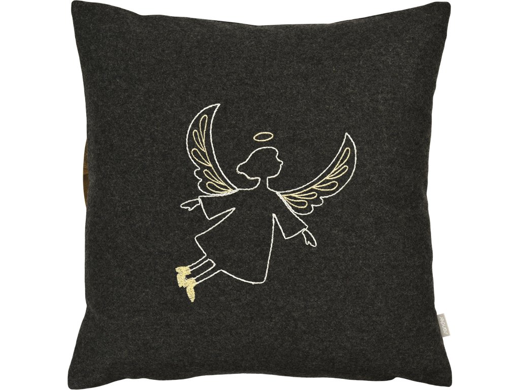 Poťah na vankúš so slávnostnou výšivkou soutache s anjelom v grafite na Vianoce - Výšivka vyrobená v Nemecku.