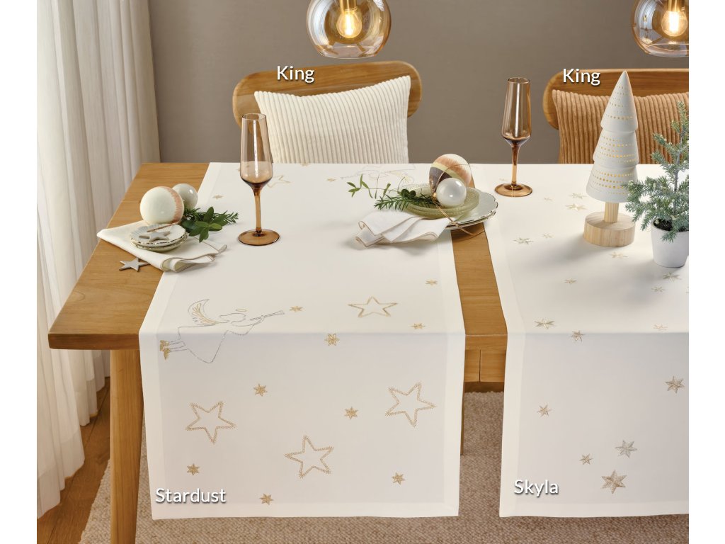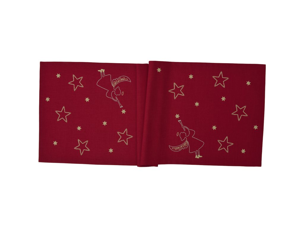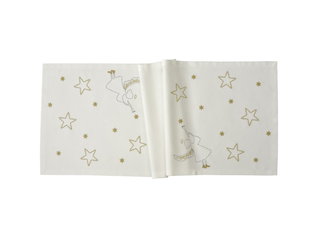 Behúň s prepracovane vyšívanými anjelmi a hviezdami v dvoch farbách - Výšivka vyrobená v Nemecku.