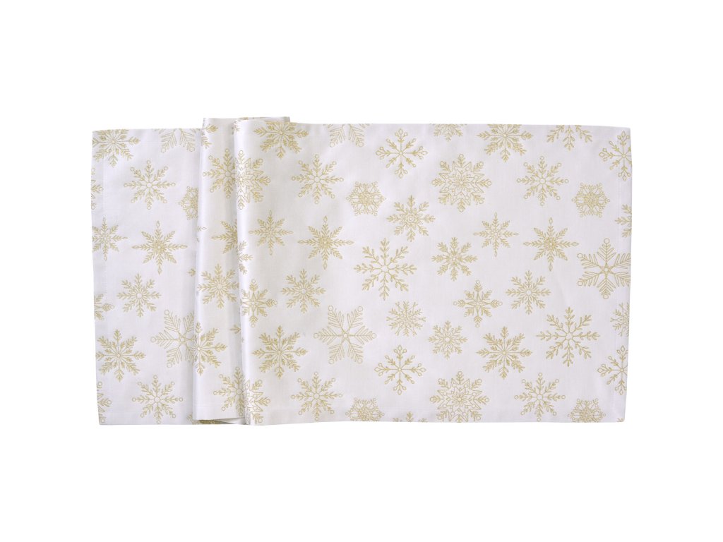Malý behúň s trblietavými snehovými vločkami na slávnostné príležitosti. Slávnostná elegancia s jemnými snehovými kryštálmi pre trblietavý vianočný lesk na Vašom stole.