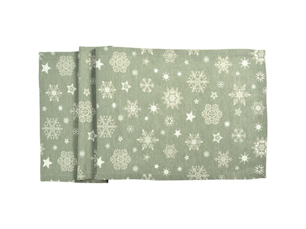 Snehové kryštály v rôznych veľkostiach a tvaroch s lesklými vláknami v zložitej žakárovej väzbe vytvárajú slávnostný nádych. Strávte tie najkrajšie dni v roku s týmto elegantným dizajnom.