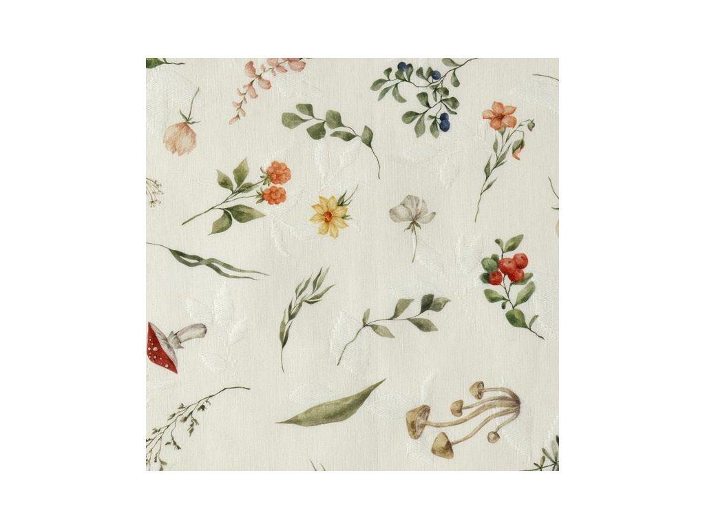 Kvitnúce kvety, konáre s bobuľami a huby vytvárajú jesennú atmosféru. Digitálna potlač na matelassé je vyrobená zo 100 % bavlny, má výrazný trojrozmerný efekt, je vysoko kvalitná a nenáročná na údržbu.