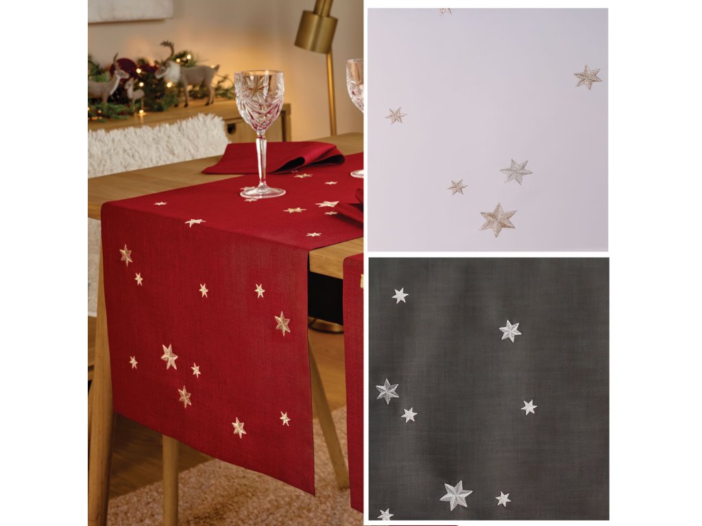 Elegantný výšivkový motív s lesklými hviezdičkami poteší nielen Vás, ale aj Vašich hostí.