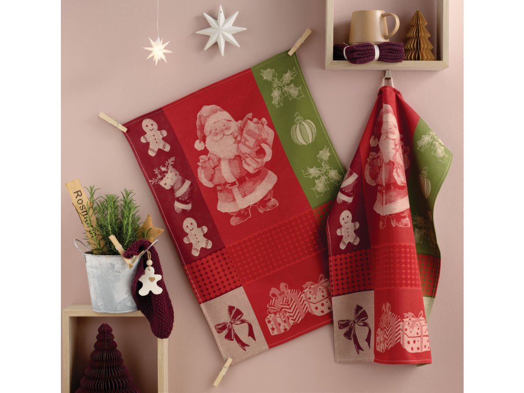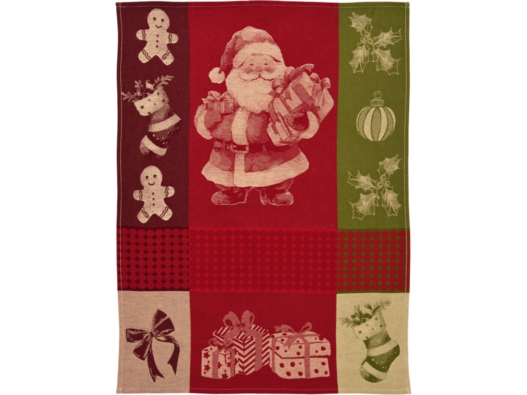 Dokonalá utierka na vianočné obdobie s vyobrazením Santa Clausa, ktorý prináša množstvo darčekov.