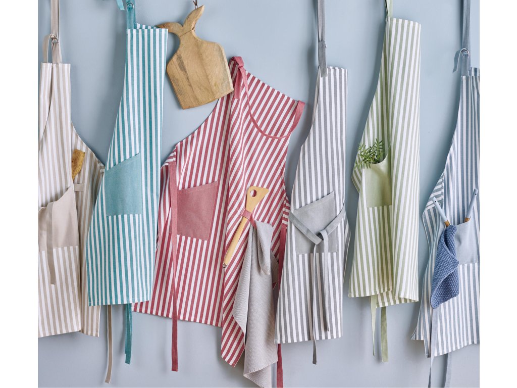 Pásikavá bavlnená zástera v 8 rôznych farbách na celý rok.