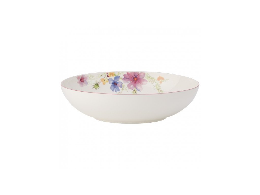 Mariefleur Charme, tvarovaná oválna misa vyrobená z bieleho prémiového porcelánu je zdobená pastelovými kvetinovými motívmi v atmosférickej harmónii. Pre veľké rodinné porcie, podávajte priateľom a rodine chutné cestoviny, chrumkavé šaláty alebo farebné zeleninové prílohy štýlovo v tejto krásnej servírovacej mise.