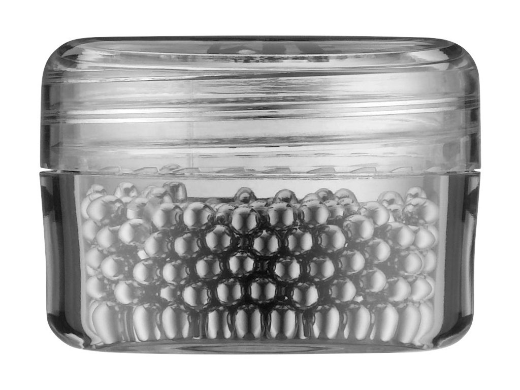 Na okamžité čistenie vnútra karaf, karaf, fliaš na pitie alebo vákuových kanvičiek. Čistiace nerezové perly od WMF sa bez námahy dostanú do každej krivky a na každé ťažko dostupné miesto. Jednoducho ho vložte do nádoby, pridajte trochu vody a prostriedku na umývanie riadu a niekoľkokrát ním zakrúžte. Malé perly sú vyrobené z vysoko kvalitnej a úplne bez chuti Cromargan®: nehrdzavejúca oceľ 18/10 a v zásade sa dajú použiť navždy. Pokiaľ ide o dizajn, kolekcia Basic od WMF predstavuje jednoduchú a modernú eleganciu, čo znamená, že dokonale zapadne do každého prostredia a dá sa ľahko kombinovať s mnohými ďalšími štýlmi. Vysokokvalitné materiály a najlepšia funkčnosť zaisťujú dlhotrvajúce produkty, ktoré ľudia radi používajú, premyslené doplnky, ako sú čistiace guľôčky alebo kefy na umývanie riadu na karafy a iné nádoby, zmysluplne dopĺňajú kolekciu.